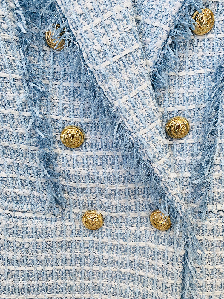 Giacca da abito di media lunghezza in tweed con bordo fluido doppiopetto autunno e inverno da donna_voghion.com