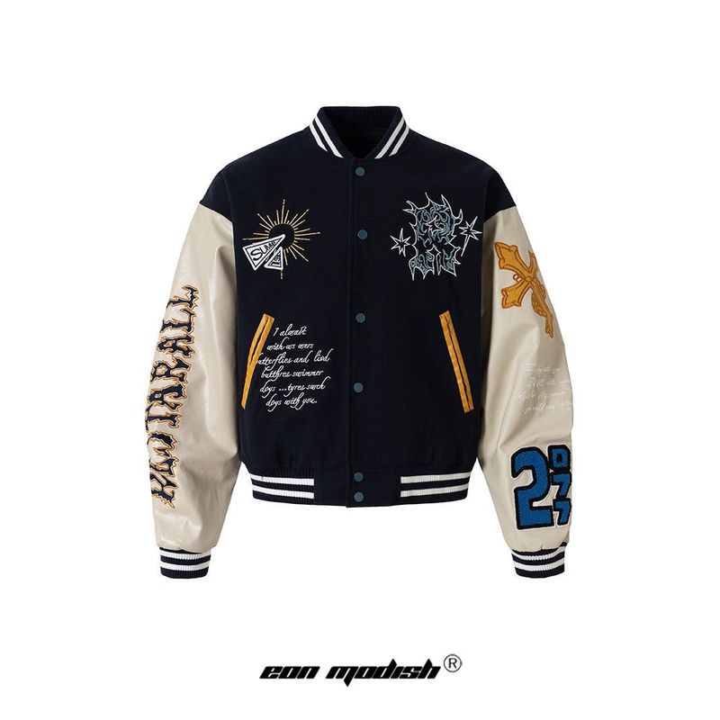 Eon Modish 25 Autumn New American Street Style Patchwork Sleeve Embroidered Totem Baseball Jacket Coat