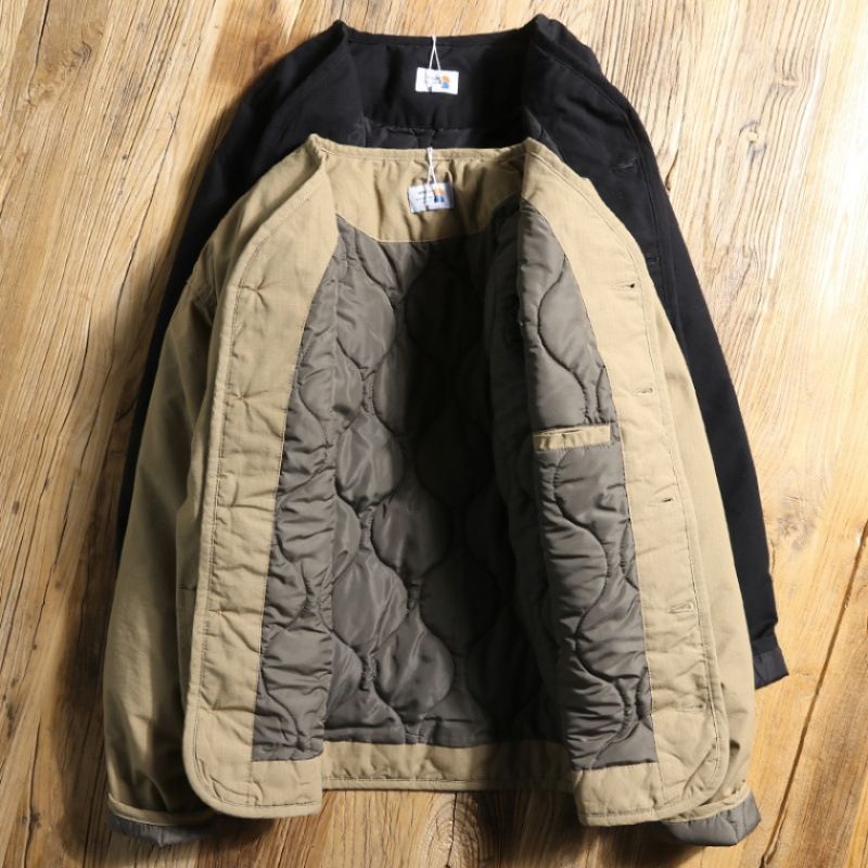 Winter Loose Collarless Cotton Jacket City Boy Workwear Warm Cotton Coat Couple V-Neck Cardigan Jacket Trendy