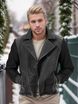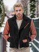 2024 New PU Leather Patchwork Woolen Men's Jacket with Turn-down Collar and Color Block Zipper Coat