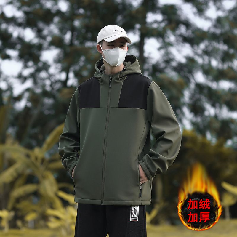 Soft Shell Jacket Men Trendy Brand Plus Size Sports Outdoor Casual Fleece Lined Thickened Waterproof Windproof Coat Jacket Warm