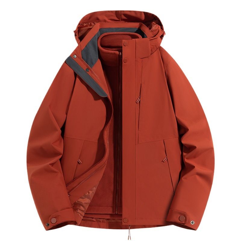 Heat-Sealed Men's Jacket Autumn Winter Warm Fleece Solid Color Simple Outdoor 3-in-1 Windproof Waterproof Hooded Coat