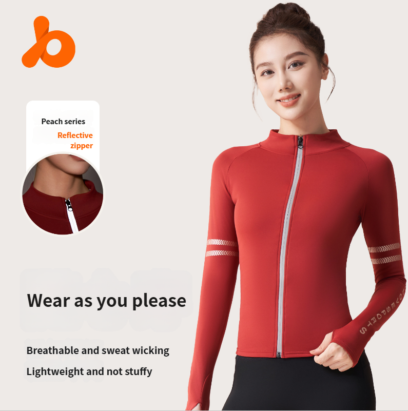Juyitang Autumn Winter Outdoor Running Fitness Sports Zipper Tight Stand Collar Long Sleeve Top Yoga Jacket