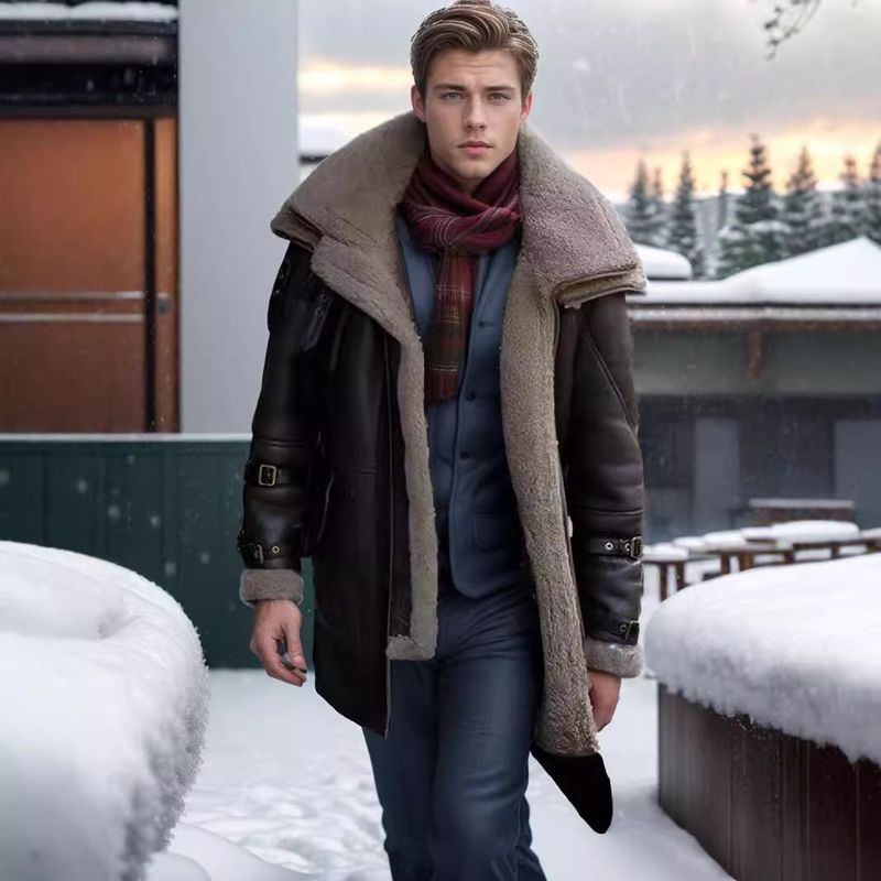 2023 Autumn Winter New Fur-Lined Amazon Jacket Thickened Warm PU Leather Coat Men's Furry Overcoat