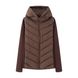 Giacca imbottita da donna con cappuccio, cerniera e collo alto - Capispalla invernale alla moda con pannelli a contrasto (bianco/nero/bordeaux)