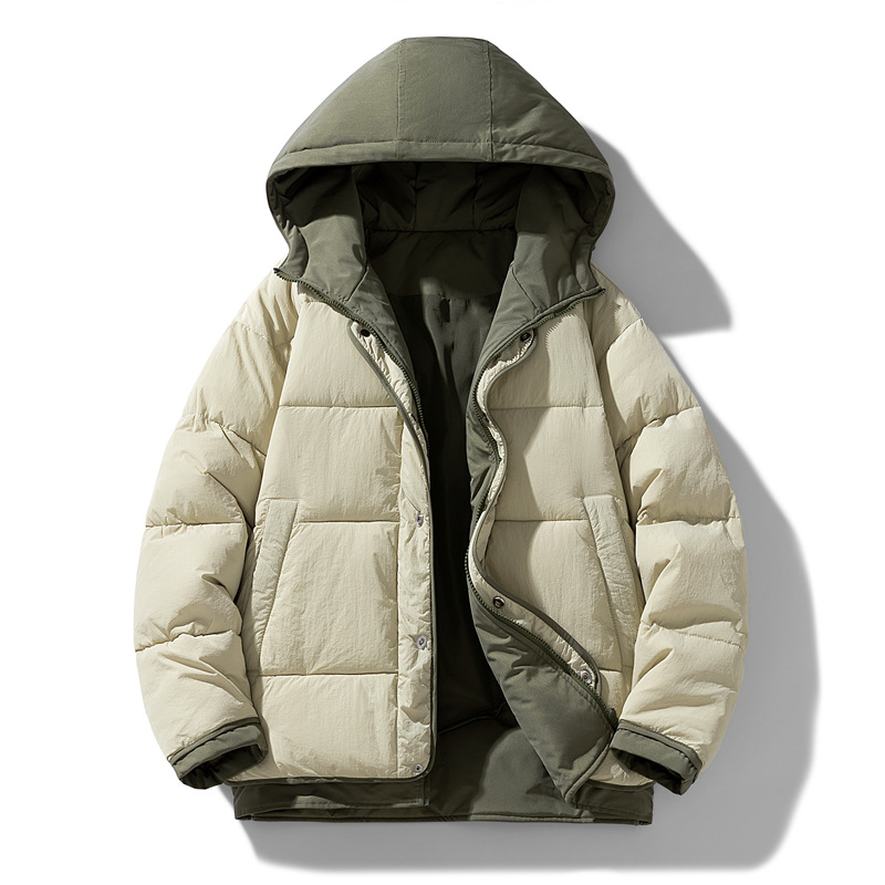 Giacca imbottita finta in due pezzi per uomo e donna, giacca imbottita larga con cappuccio, giacca imbottita spessa con cappuccio per coppia
