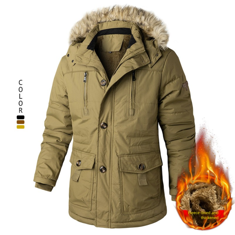 Giacca imbottita in cotone da uomo, taglia comoda, in pile caldo con cappuccio invernale 2024