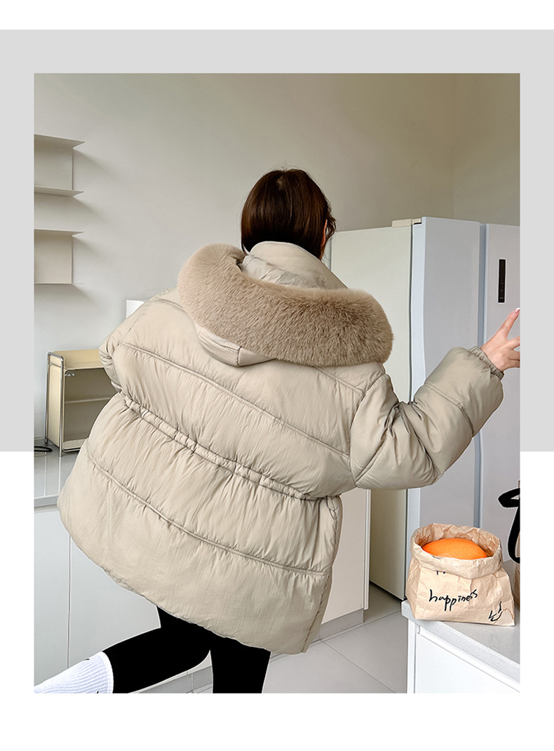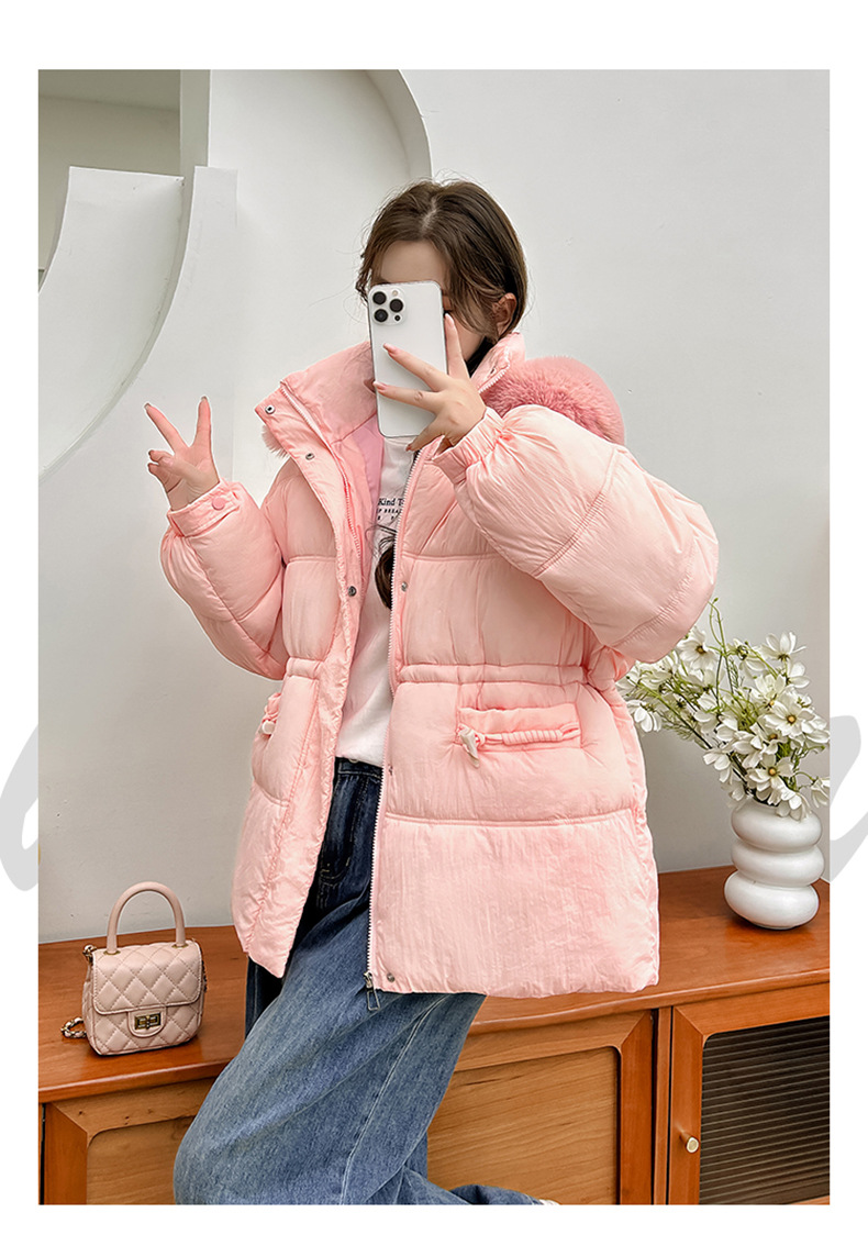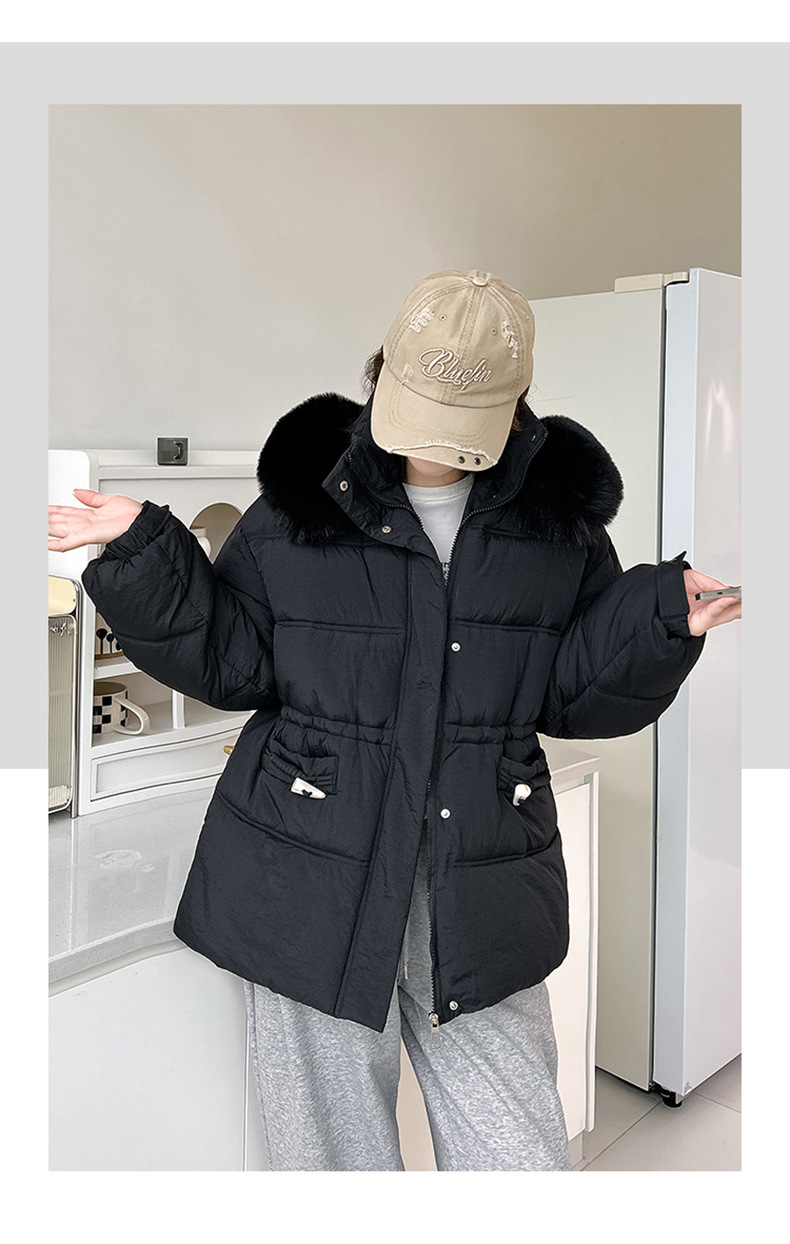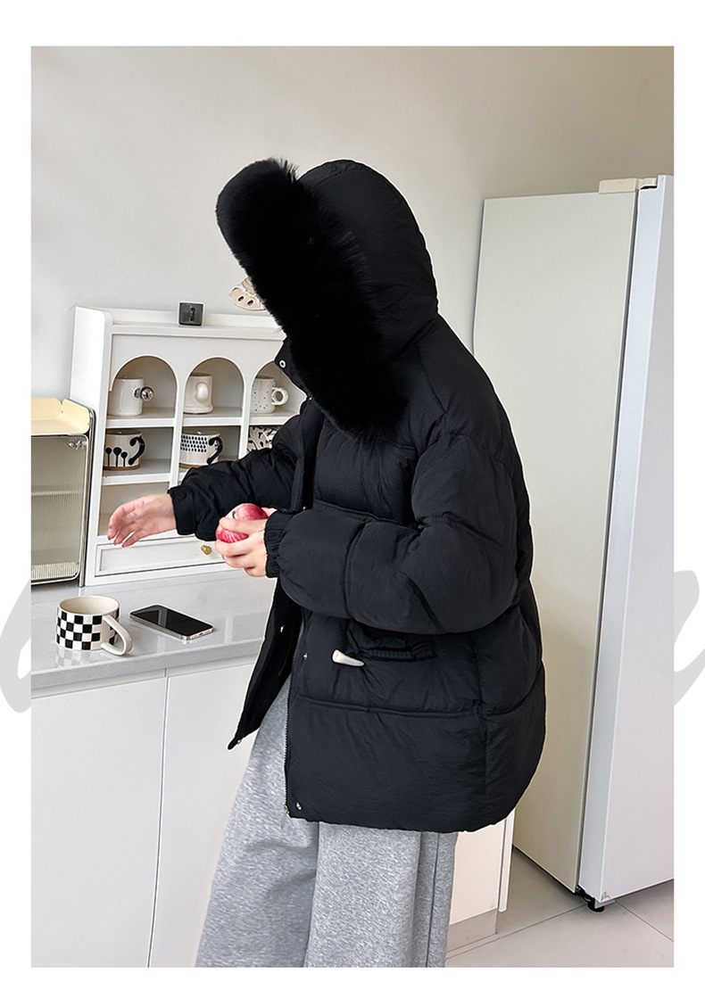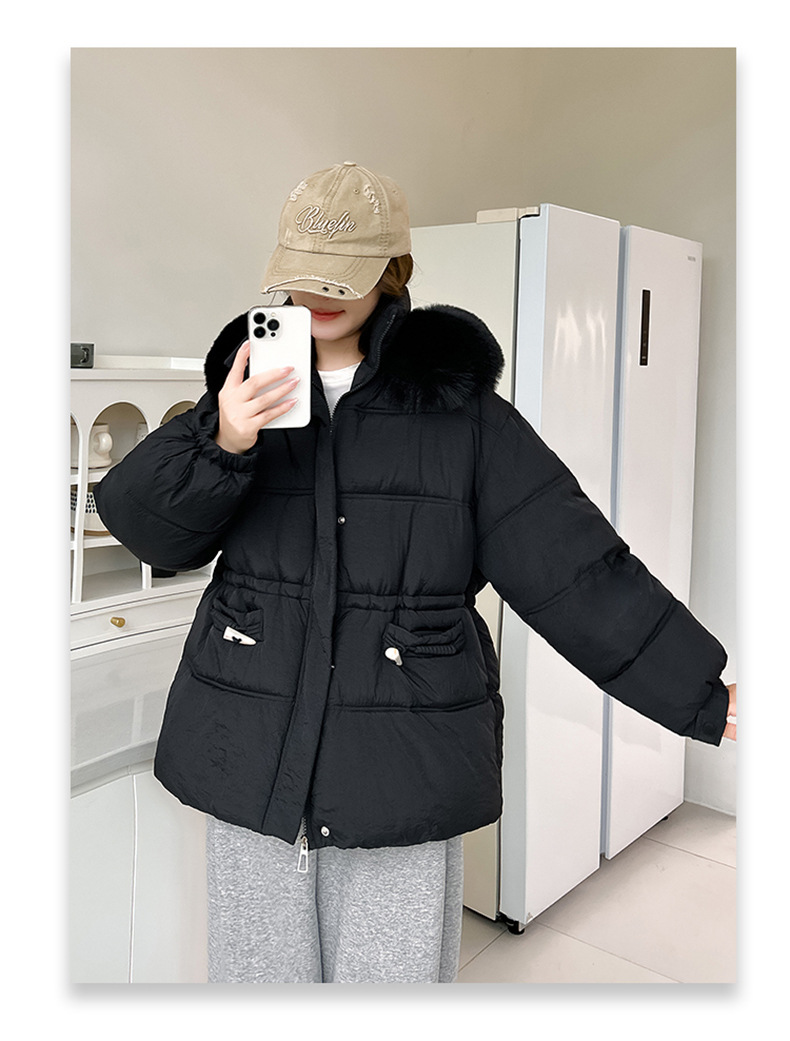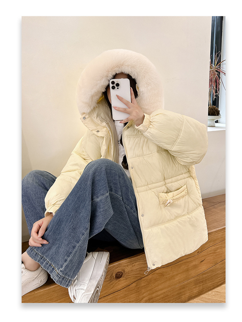 Giacca in cotone con bottoni in corno di mucca dolce versione coreana per donna, nuovo stile invernale da medio a lungo, grande collo di pelliccia,