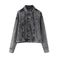 Giacca in denim con rivetti alla moda da donna, gonna in denim a vita alta