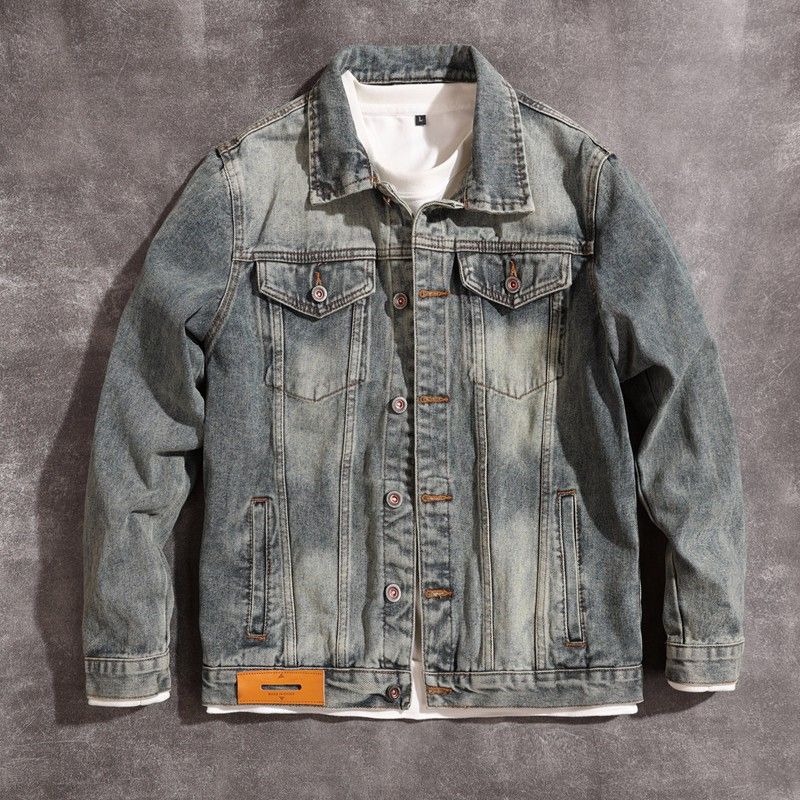 Giacca in denim da uomo con utensili, marchio alla moda, primavera e autunno 2023, nuova giacca americana retrò larga, top in denim da uomo_voghion.com