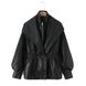 Giacca in pelle da donna con colletto a doppio strato, elegante e di alta qualità, che snellisce la vita