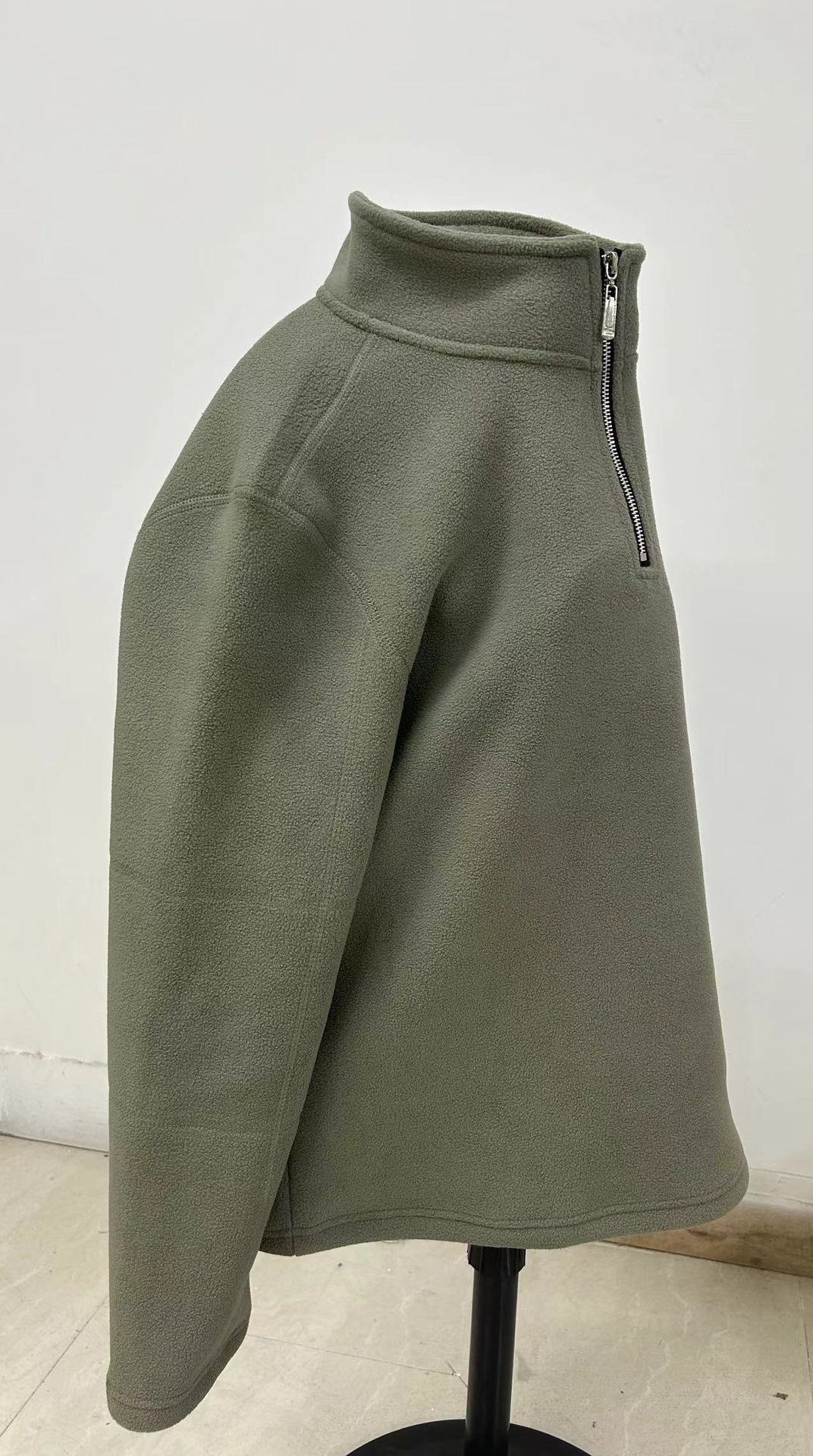 Polar fleece double-sided comfortable fleece stand up collar jacket, half zipper cardigan, long sleeved trendy versatile 450g