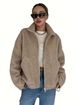 Giacca in pile oversize da donna – Cappotto corto in peluche con cerniera, collo alto e maniche lunghe (S-XXL, poliestere, abbigliamento casual da strada)