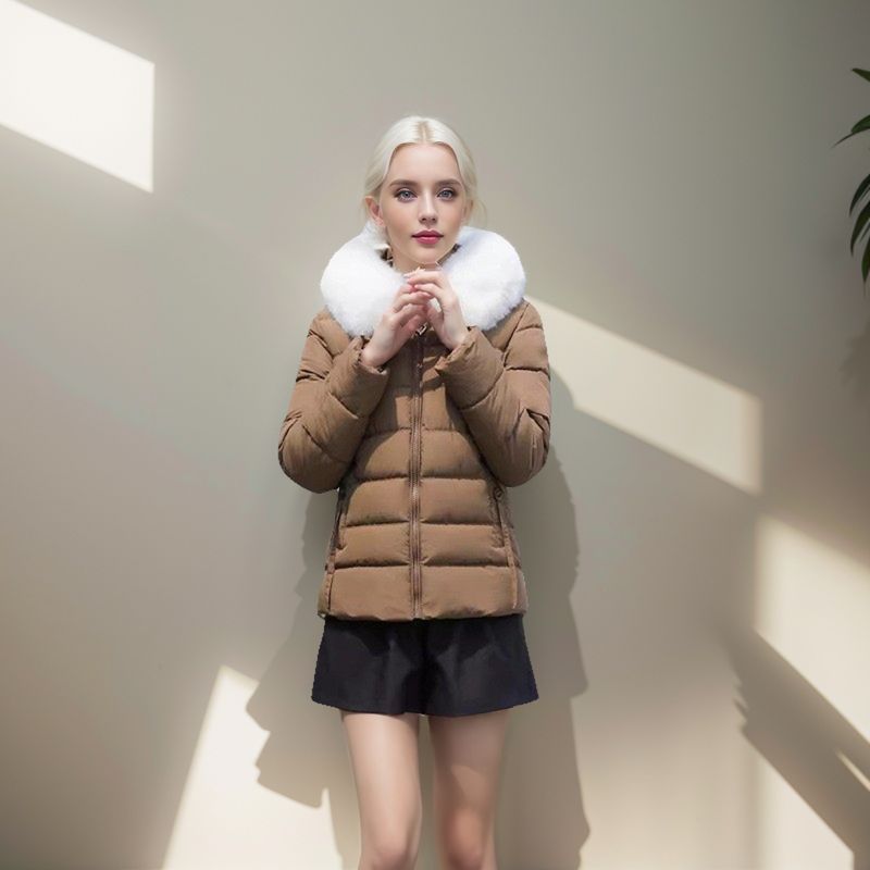 Giacca invernale da donna con grande collo in pelliccia, nuovo stile corto 2024, vestibilità slim fit, in cotone spesso