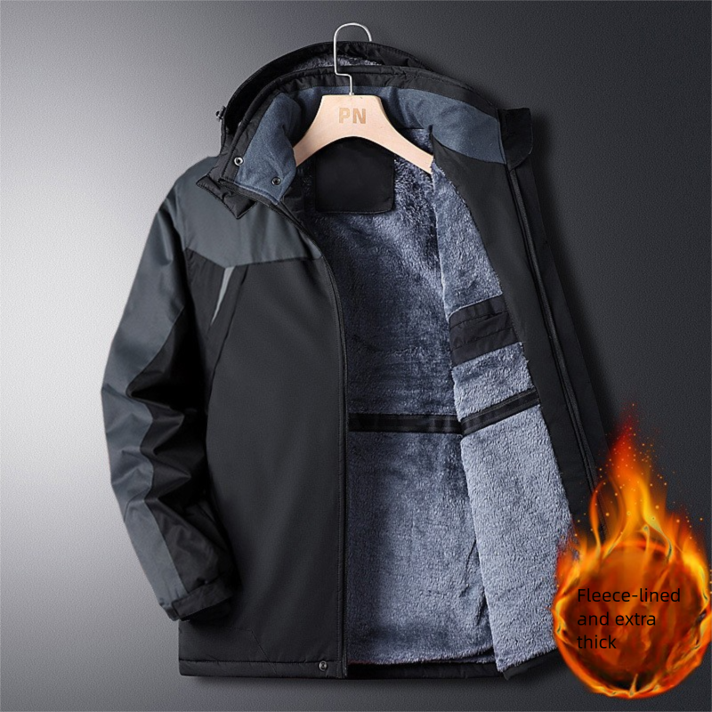 Men's Winter Jacket with Fleece Lining, Thickened Cotton Coat, Windproof and Warm, Outdoor Large Size Loose Jacket, Customizable