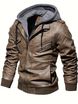 [Winter Jacket] Men's Casual Hooded Full-Zip Winter Jacket - Loose Fit Warm Coat with Zippered Pockets, Full-Length Zipper Closure & Polyester Lining, Brown Outer Shell for Autumn/Winter Outdoor & Casual Attire