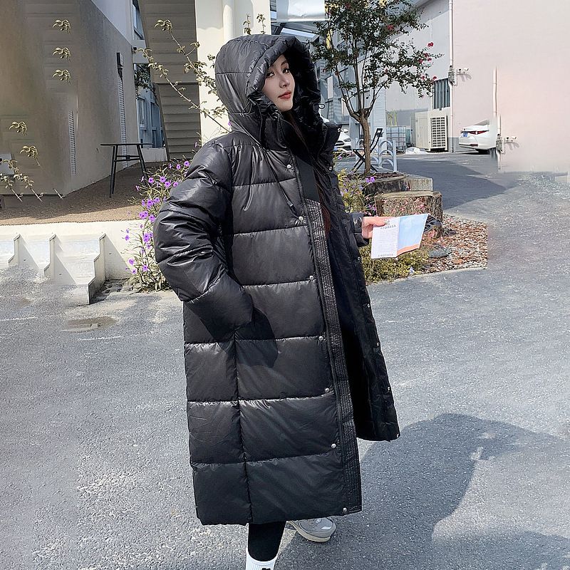 Giacca lunga in piumino nero oro, donna in inverno, nuova giacca larga e spessa in cotone sopra il ginocchio per coppie