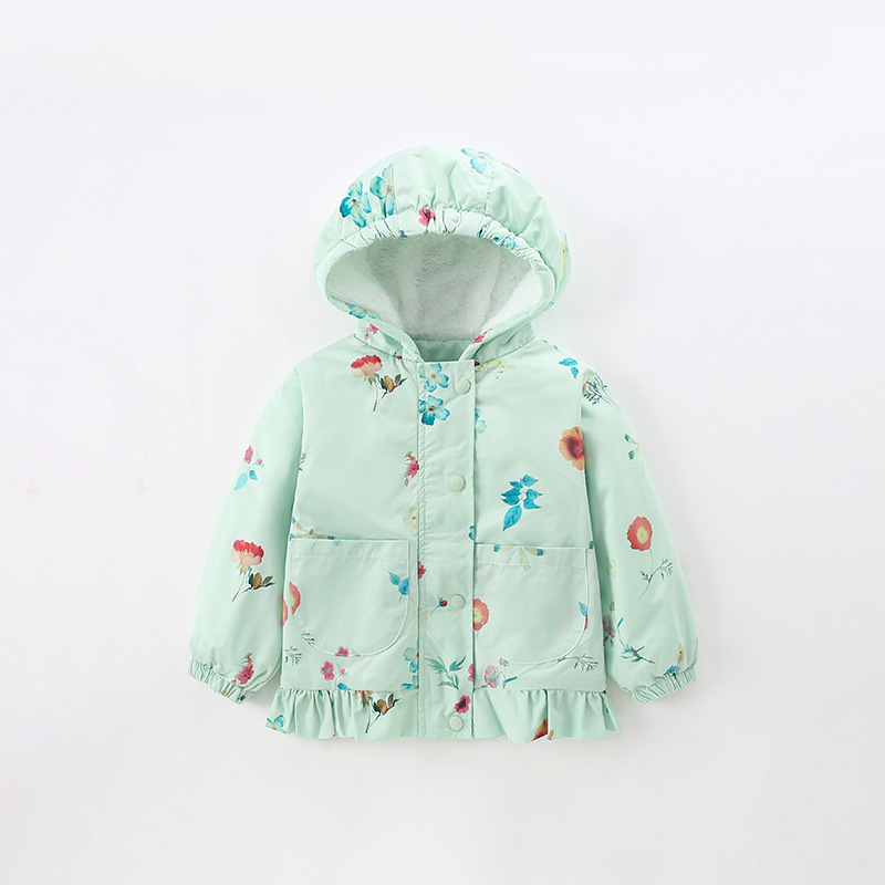 Malwee Girls' Jacket Autumn Winter New Fleece-Lined Toddler Casual Hooded Zipper Cardigan Children's Clothing