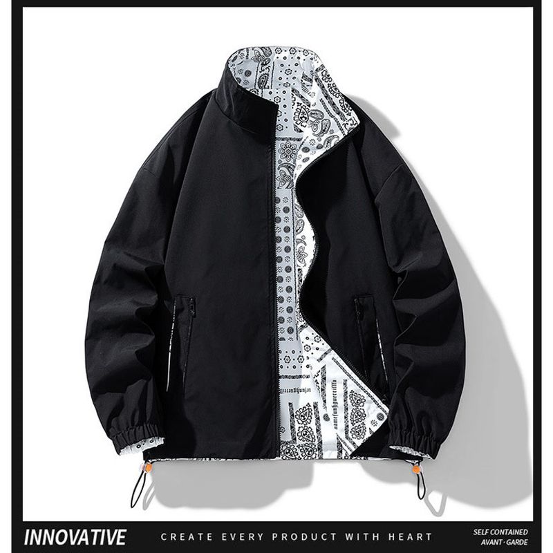 Spring and Autumn Reversible Jacket Men's Fashion Printed Loose Casual Plus Size Coat Men's Stand Collar Top