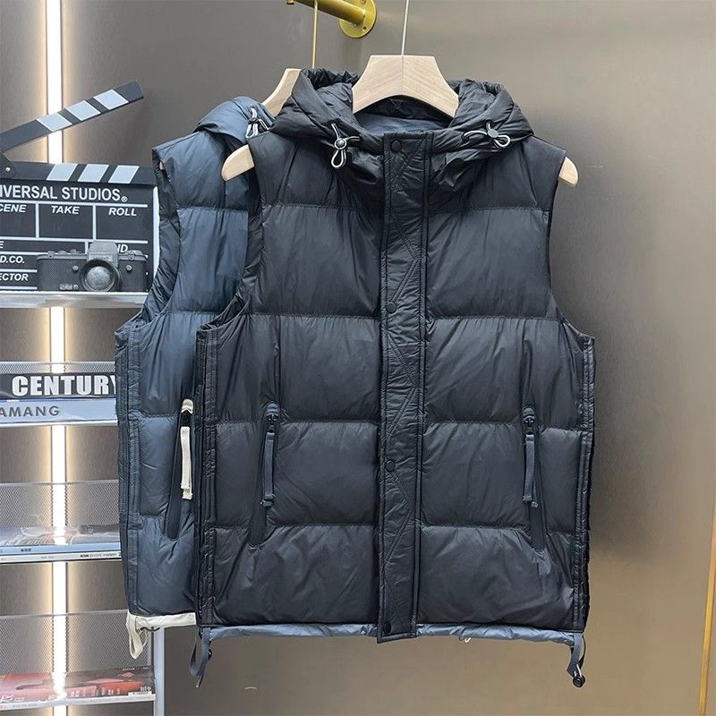 High-End Men's Down Vest Autumn Winter Thick Vest Trendy Sleeveless Jacket Lightweight Casual Hooded Vest Wholesale