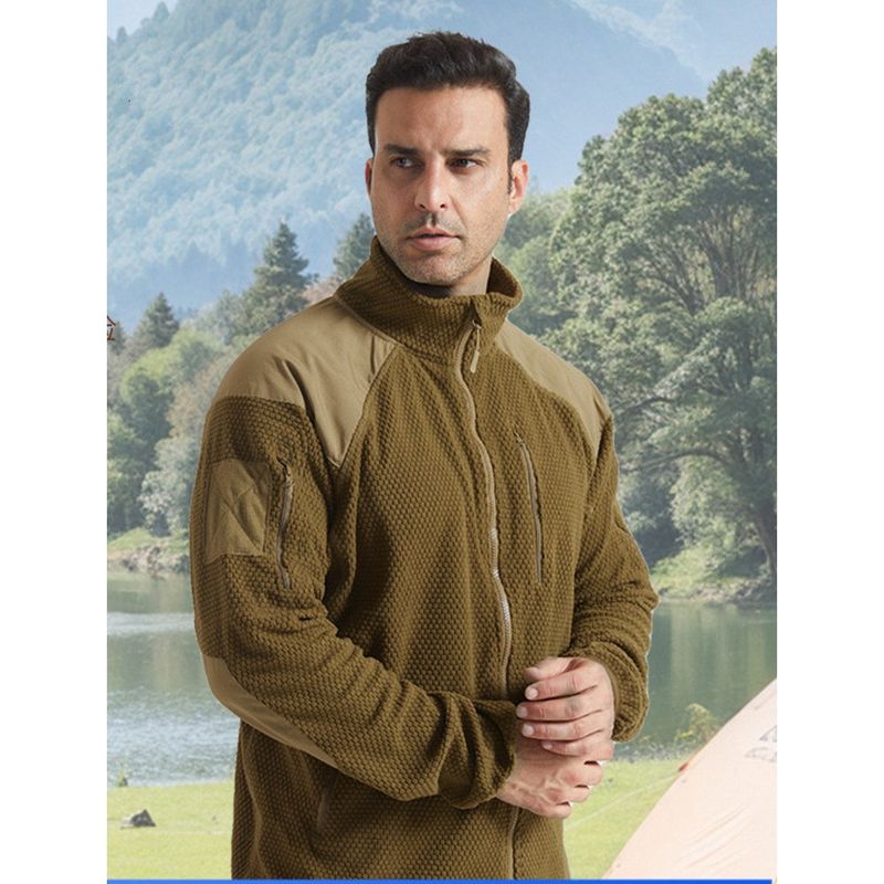 Football Grid Fleece Outdoor Sports Stand Collar Fleece Jacket Tactical Warm Coat Men's Softshell Jacket Inner Liner Camping Use