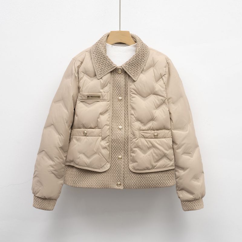 Giacca stile fragranza Pinghu Little per donna, corta, nuova, leggera, autunnale, in piuma d'anatra bianca goffrata, versione coreana