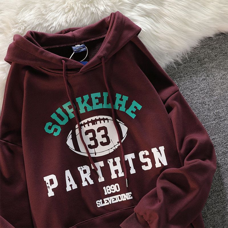 American Style Casual Fleece-Lined Hoodie Unisex Autumn Winter Rugby Print Affordable Jacket