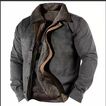 Abbigliamento da uomo Tasca con cucitura laterale spessa cerniera casual sciolto tipo Giacca in cotone giovanile marrone lupo