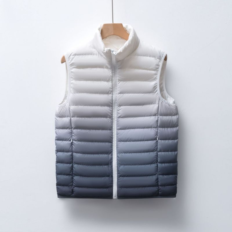 Gilet da uomo con collo alto in pile 90, giacca leggera in piumino d'anatra bianco, giacca con colori sfumati