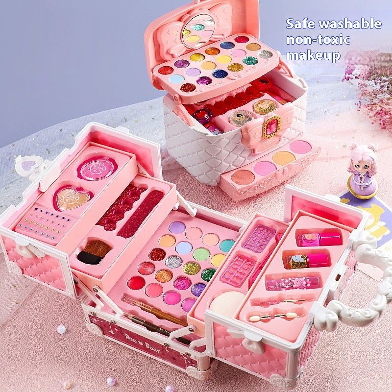 Giocattoli per il trucco per bambini, set di cosmetici per spettacoli teatrali per ragazze principesse, smalto per unghie, scatola regalo di compleanno