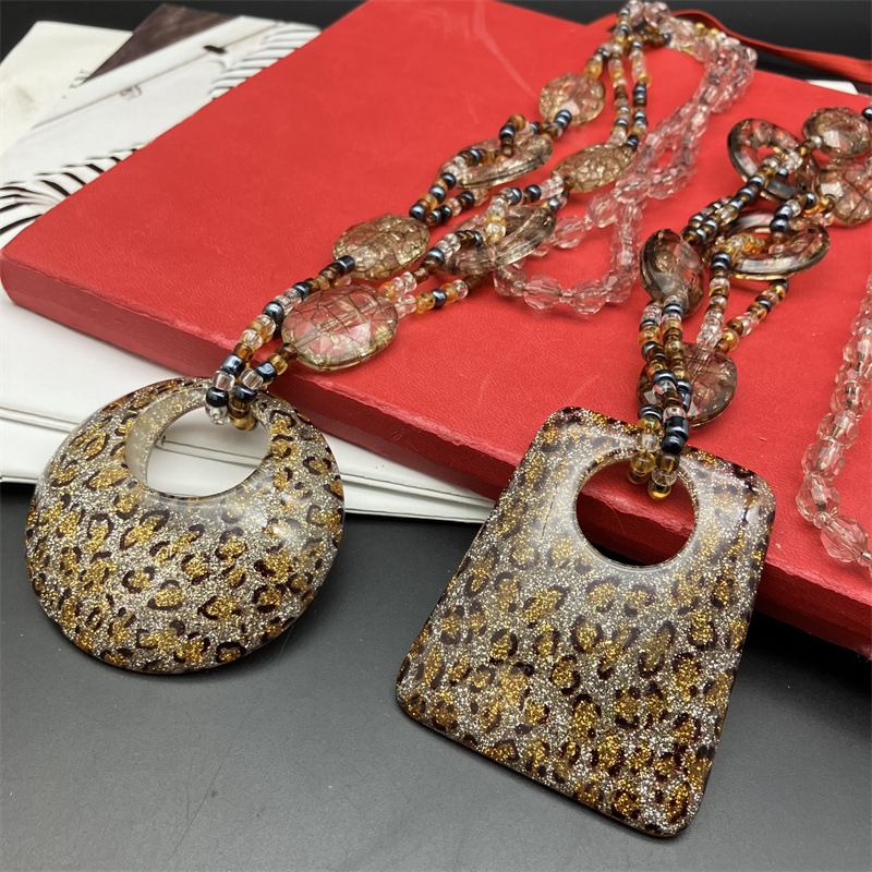 Gioielli leopardo stampa maglione collana lunga resina trapezoidale circolare maglione catena donna