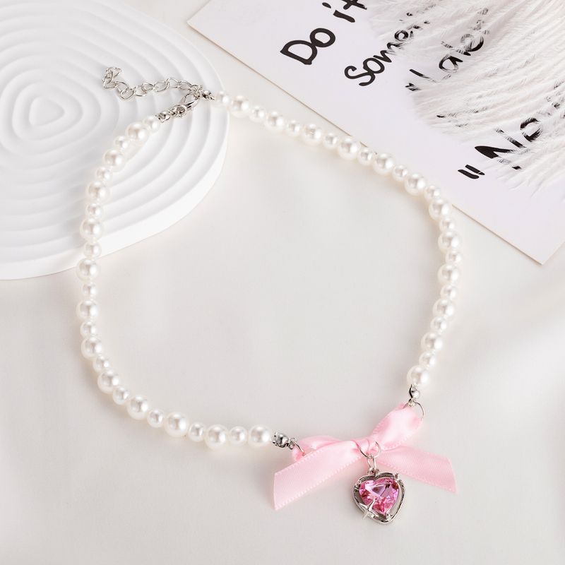 Fashionable and versatile jewelry, pearl heart bow necklace, necklaces, and accessories