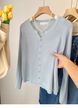 ragazza 6 lana latte blu corto lavorato a maglia per donna primavera e autunno cardigan a maniche lunghe piccolo profumo stile strato interno base