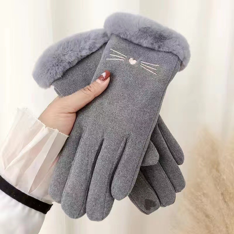 Gloves for women in winter, plush and thick insulation, cute touch screen, German velvet, autumn and winter electric vehicle, cold proof cycling gloves