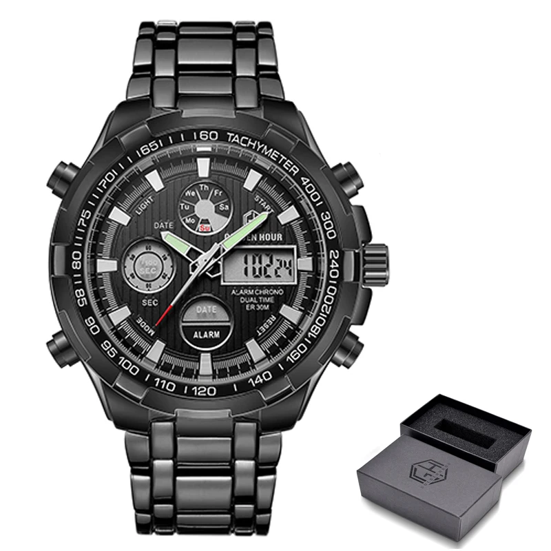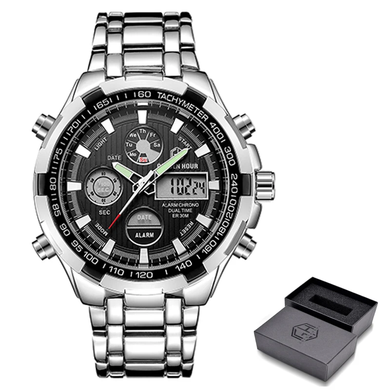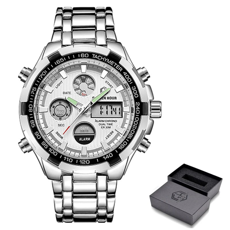 GOLDENHOUR Orologio sportivo da uomo al quarzo digitale analogico da uomo Orologio da polso in acciaio pieno