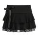 Gonna a pieghe a strati con fiocco in pizzo scuro RenMou Instagram, tinta unita, snellente, stile corto, fornitura esclusiva 2023