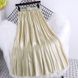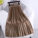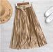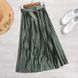 Gonna a pieghe ampia a vita alta in raso metallizzato, con cintura, per donna, con drappeggio, colore brillante e lustro, a linea A, lunghezza media