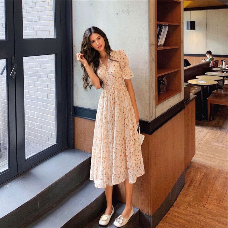 Gonna a stelo in chiffon arancione profumato di Fengxia, nuova collezione di celebrità di Internet, con vita, lunghezza media, stile occidentale.