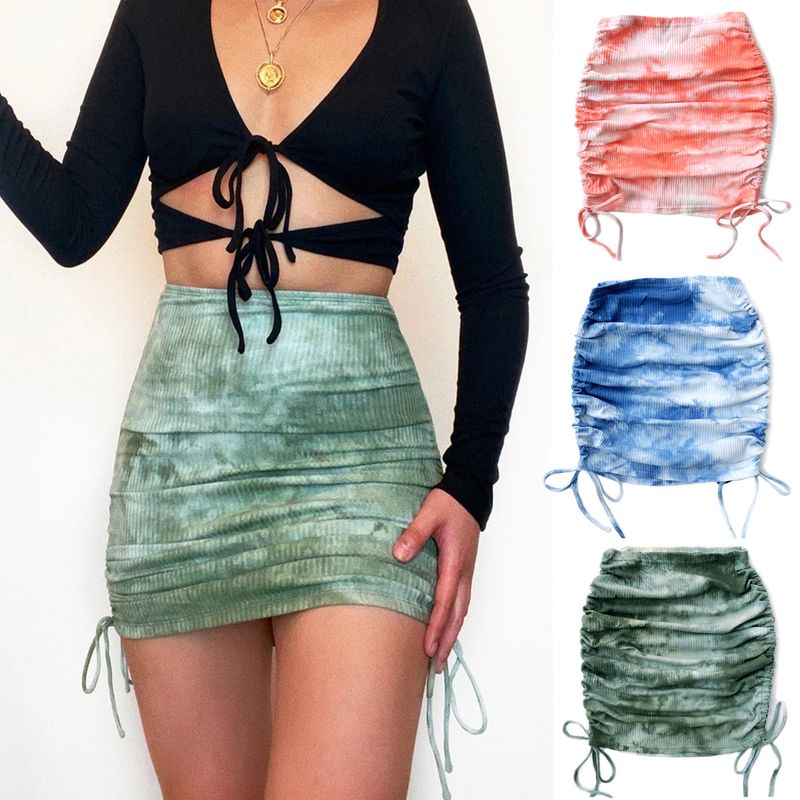 Gonna aderente elasticizzata a vita alta, sexy e plissettata, in maglia con coulisse e tie-dye, da donna Verve_voghion.com