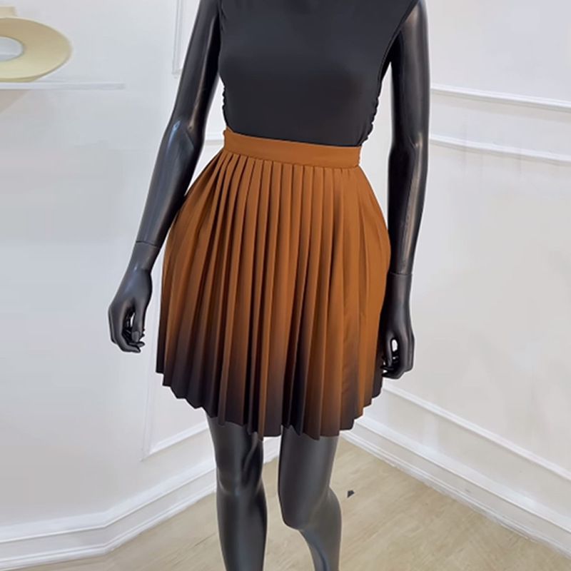 Gonna corta a pieghe a pieghe con gonna a trapezio in pizzo sottile a vita alta estate 2024 da donna