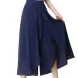 Gonna in chiffon a doppio strato con orlo diviso, pantaloni da donna, vita alta elastica, larghi, gamba larga, lunghezza a metà polpaccio, pantaloni corti