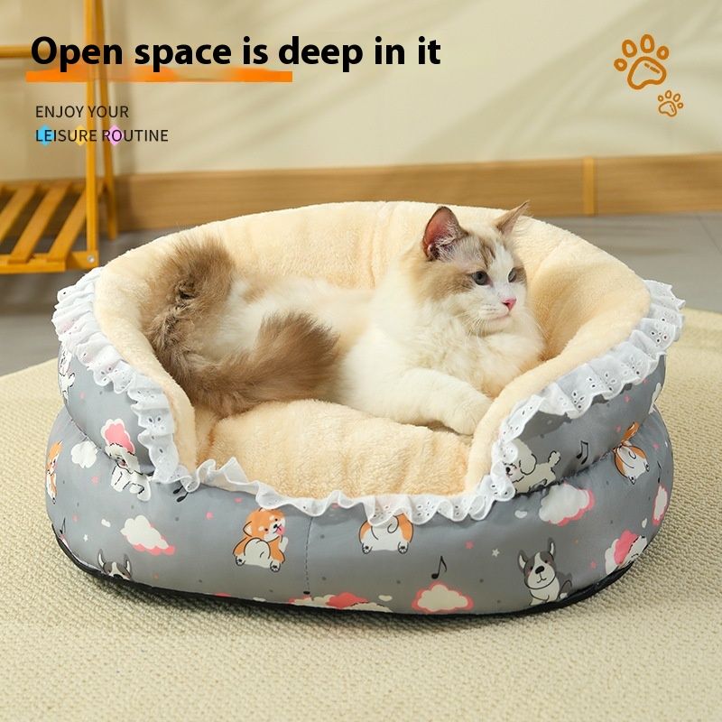 Winter Warm Dog Nest Cat Nest Open Floral Skirt Square Nest Thickened Four Seasons Universal Pet Nest Pet Supplies