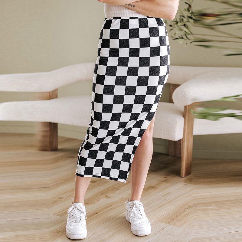 Gonna midi aderente a quadri con spacchi laterali e vita alta, modello Verve, autunno/inverno 2025, per donna