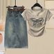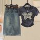 Gonna midi in denim retrò con maniche corte ricamate a farfalla in denim tie-dye estivo da donna