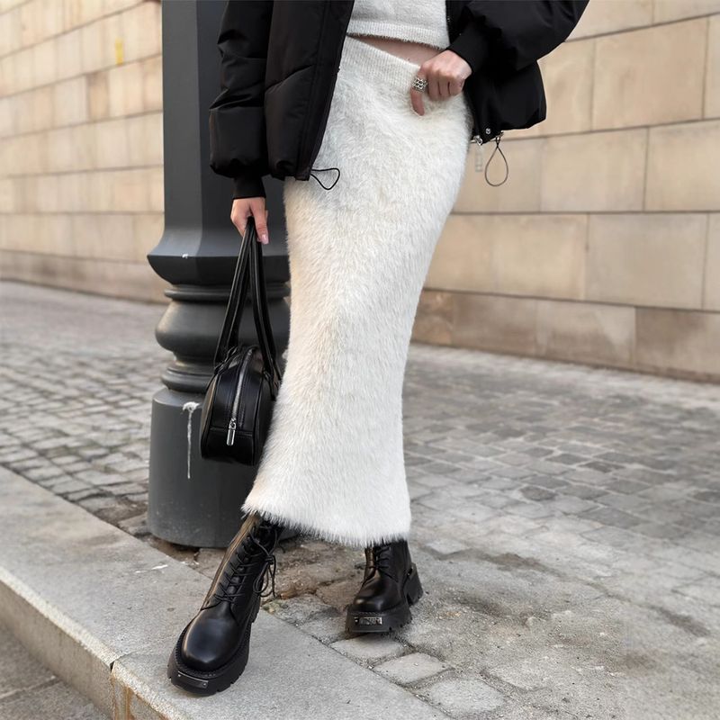 Knitted Furry Midi Skirt 2025 Autumn Winter New Long Midi Skirt Ins Warm Midi Skirt for Women