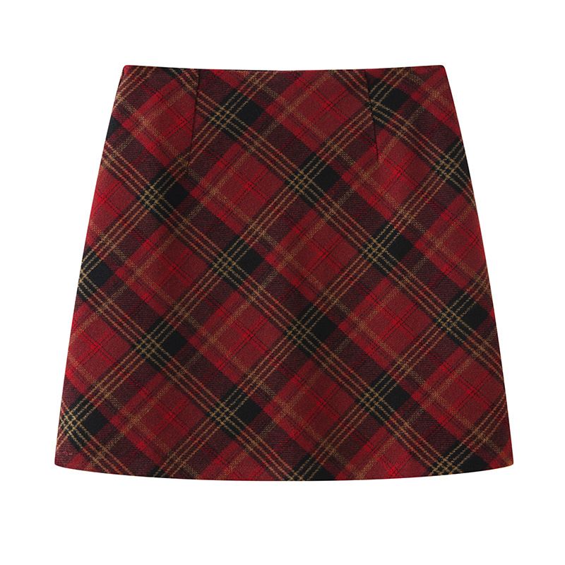 GraceChic 2024 Nuova gonna midi in lana spessa a quadri retrò per donna, invernale, snellente, a trapezio, versatile e aderente