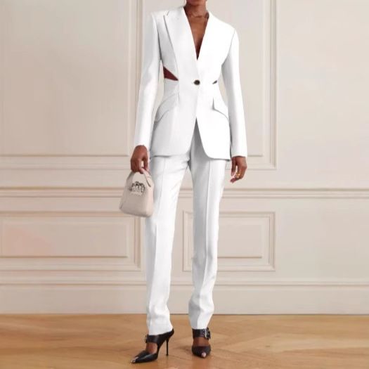 GraceChic 2025 Autunno Nuova Moda Set Due Pezzi di Alta Qualità per Donna Blazer con Scollo a V e Pantaloni a Gamba Larga Completo Abbigliamento Donna