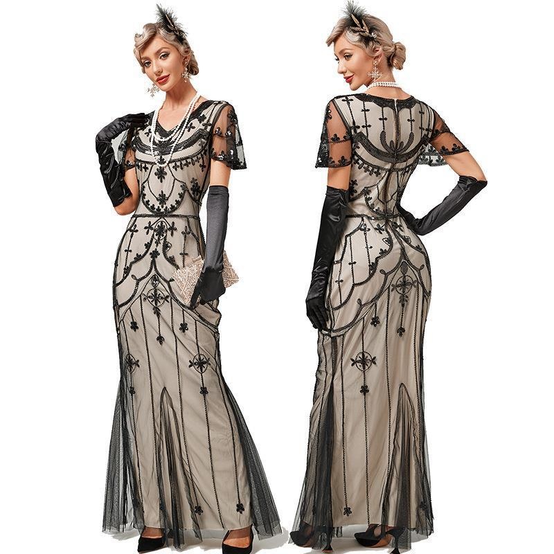 GraceChic Abito da sera lungo aderente a maniche corte in stile retrò anni '20 con paillettes