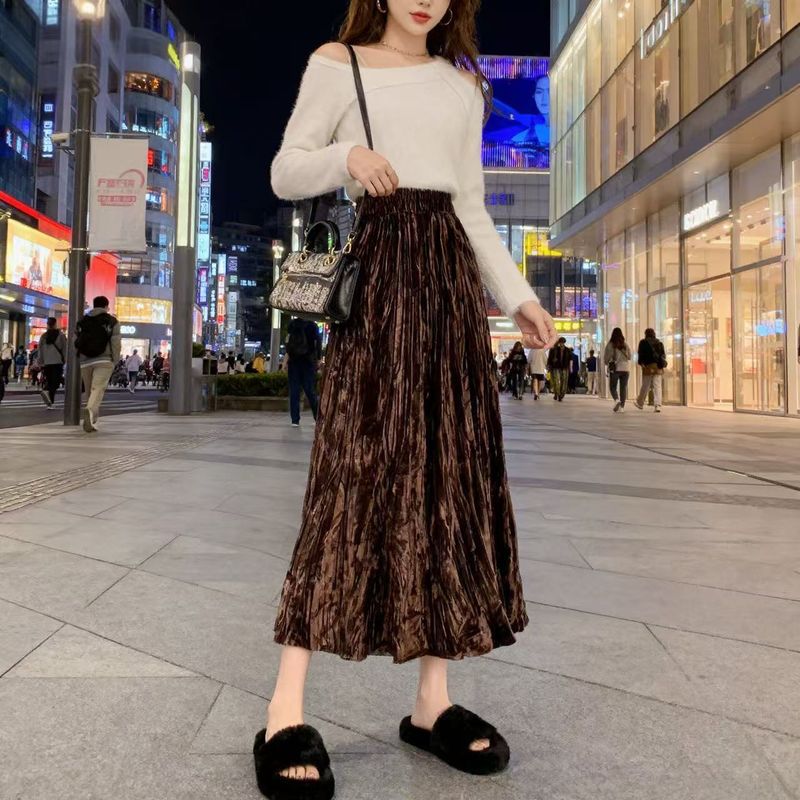 Pattern:Solid Color,Craftsmanship:High-Temperature Styling,Fabric Name:Polyester Fiber,Main fabric composition:Velvet,Main fabric material composition 2:Spandex,Year/Season of Release:Autumn 2025,Item Number:Pleated Velvet Skirt,Skirt Style:Pleated Skirt,Skirt Length:Mid-length Dress,Trendy Elements:Pleats, pleated, crimped,Color:Black, coffee color, apricot color,Size:One Size,Style Type:Vintage Art Style,Style:Vintage Style,Skirt Category:A-line Skirt,Elasticity:Slightly Elastic,Cross-border Style Type:Comfortable and casual,Is it cross-border sourcing?:yes,Main fabric component 2 content:Below 30%,Main Downstream Sales Regions 1:European and American,Main downstream sales regions 2:Southeast Asia
