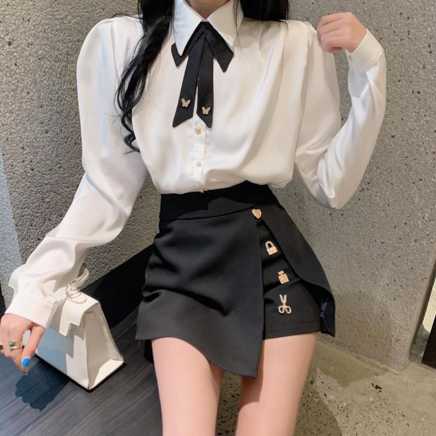 Item Number:1859325740015980,Pattern:Other,The length of the pants:Three-quarter Pants,Trendy Elements:Zipper, bowknot, button,Craftsmanship:Composite,Year/Season of Release:Spring 2025,Fabric Name:Polyester,Main fabric composition:Polyester,Main fabric material composition 2:Other,Brand:norns girl,Color:Bow Tie Shirt, 068 Black Skirt Pants, Bow Tie Top + 068 Black Skirt Pants, Great Price,Size:S,M,L,XL,2XL,Style Type:Private Server Socialite,Style:Trendy Style,Set Style:Men's Pants Set,Cross-border Style Type:Elegant and graceful,Applicable Gender:Female,Sleeve Style:Long Sleeve,Sleeve Length:Long Sleeve,Is it cross-border sourcing?:yes,Product Category:Casual Outfit,Main Downstream Sales Regions 1:European and American,Main downstream sales regions 2:Other